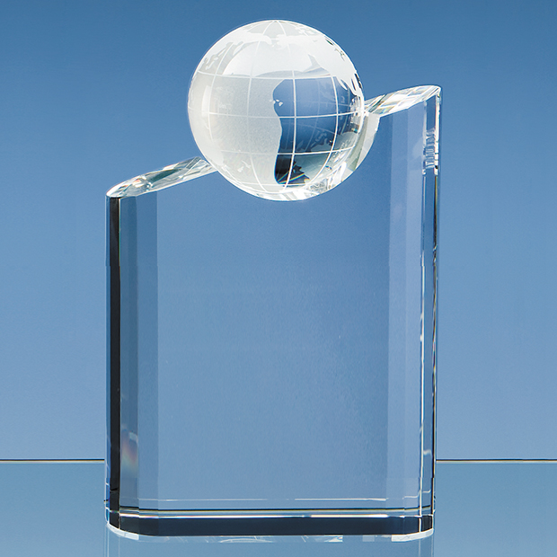 The photograph does not do justice to the extremely impressive 18cm Globe Award that is hand crafted out of perfectly clear optical crystal. The award makes an ideal recognition, achievement or incentive gifts for global, travel or transport based companies. It benefits from a large engraving area and can be personalised with any crest, logo or wording to create an award that is sure to take pride of place when put on display at home or at work. It is supplied in a black foam lined presentation box.