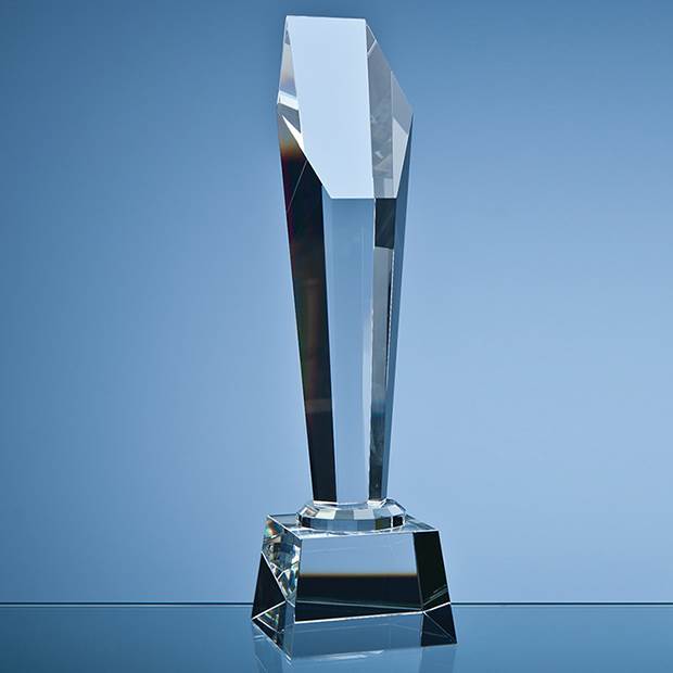 A stylish and modern looking award that features a graduated Hexagon that has been hand crafted out of perfectly clear optical crystal. The Hexagon is mounted onto a shaped optical crystal square base, both of which can be personalised with any crest, logo, or wording to create an award that is sure to take pride of place when put on display at home or at work. It is an ideal recognition, achievement or incentive gift and is supplied in a black foam lined presentation box.