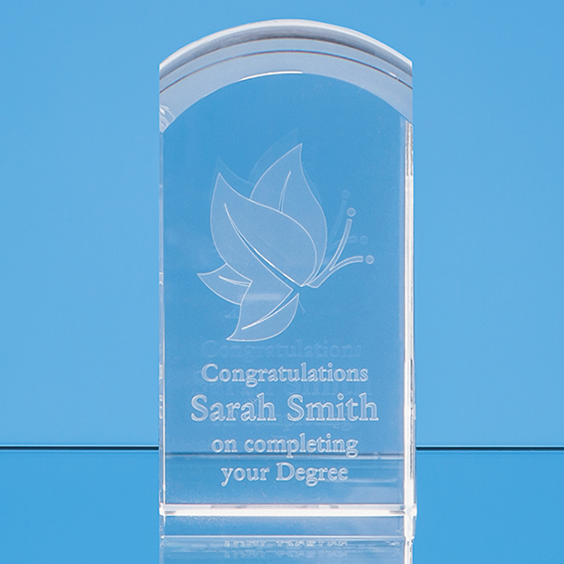 The optical crystal Dome Towers are available in 3 different sizes. Any bespoke design can be sub surface laser engraved inside the crystal piece with a 2D or 3D image to create a stunning and unique gift.