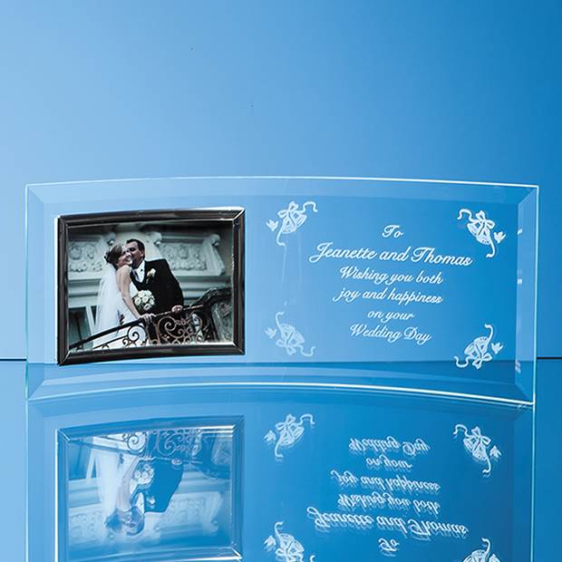 The horizontal curved jade glass picture frame is an ideal gift to mark a graduation, sporting success, birth or christening and benefiits from a large engraving area that can be personalised with any logo, crest or wording that is required. The frame holds a 4 x 6 photograph and is supplied in a white presentation carton.