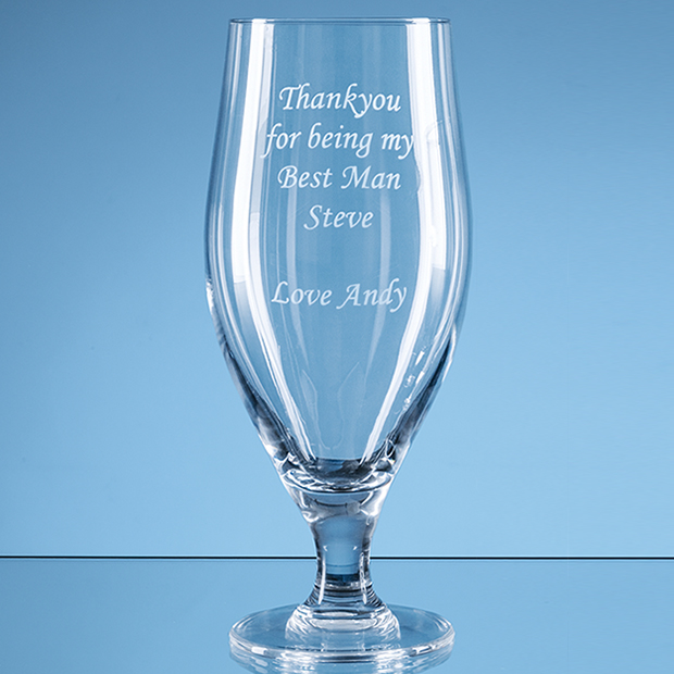 This 0.62ltr Stelara Beer Glass is beautifully crafted and has a modern tulip design. It is ideal to pour your favourite cold beer into at the end of a long day. It has a large surface area perfect for a personal message crest or logo whether sandblast engraved or colour printed. Sold individually or as a pair this would make an ideal gift or perfect for everyday use. Why not add a satin lined presentation box for an extra special touch