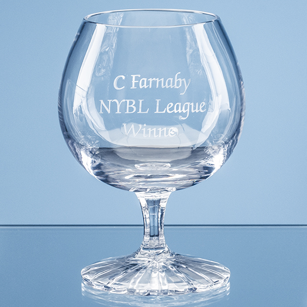 The 280ml Grosvenor lead crystal brandy glass is beautiful in its own right, not only does it look great, it feels great too. The brandy glass is hand made and features a star cut base. Add any crest, logo or wording to create a unique gift that will be treasured by the recipient. The brandy glass is part of a suite of Grosvenor tableware that are perfect for home or corporate functions. Available as an option is a deluxe satin lined presentation box.