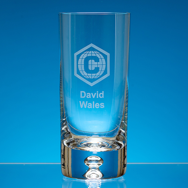 The bubble base high ball is a simple modern style with a solid base and a large engraving area. It is perfect for corporate events or as a personalised gift. It can be personalised with any logo, crest or wording and would not look out of place at special events.