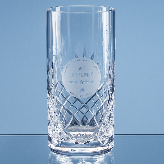 The Blenheim lead crystal panel whisky tumbler is a traditional design with diamond cut detail. It can be personalised with any logo, crest or wording and will look great on display at home or in the office. Also available in the Blenheim collection are whisky tumblers, wine glasses, goblets and champagne flutes.